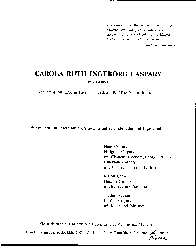 Urururururururgroßeltern väterlicherseits: Caspar I Caspars (*1595) mit Barbara N.
